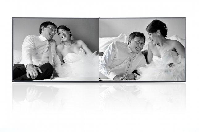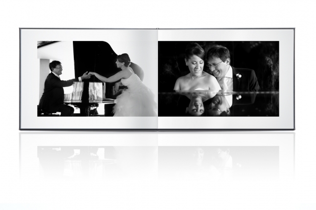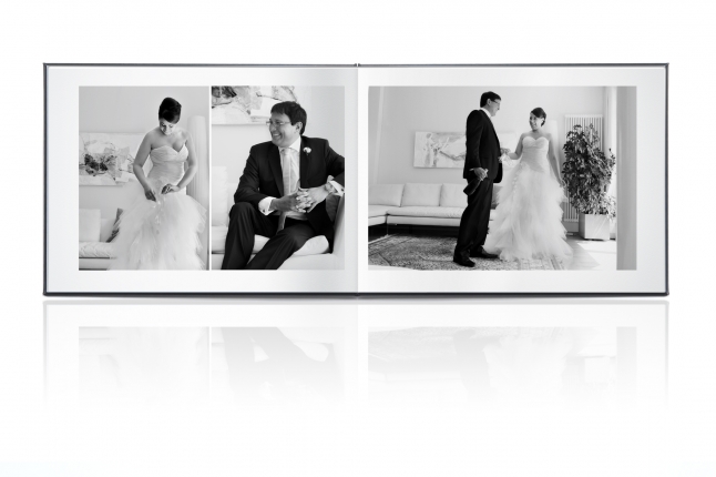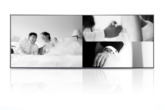 Découvrez ici quelques pages du livre Studion Pro_Line Mariage, reliure artisanale, dimension ouverte 30x80 cm (dimension de la photo).
