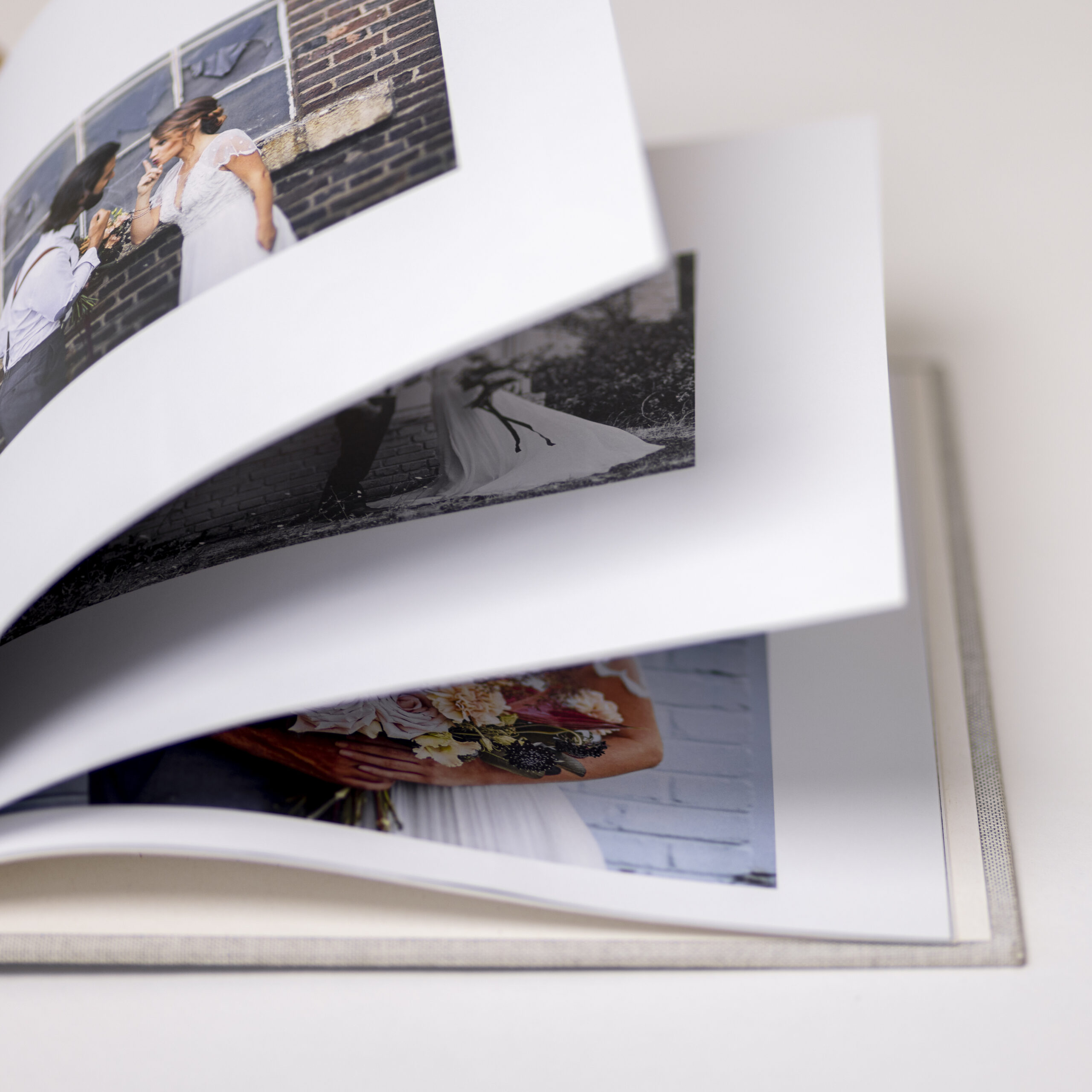 Un livre photo élégant pour préserver vos souvenirs avec simplicité et raffinement. Relié avec pli central et confectionné à la main dans notre atelier, il offre une excellente tenue dans le temps.