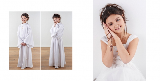 Vous noterez que le livre album garçon (consultable à la page "Nos réalisations") est quant à lui dans un style plus moderne et qu'il reprend un nombre moins important de photos religieuses.
