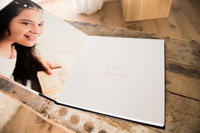 Voici quelques photos de notre réalisations 100% artisanale, made in Luxembourg : le Livre album de communion de Soraia.